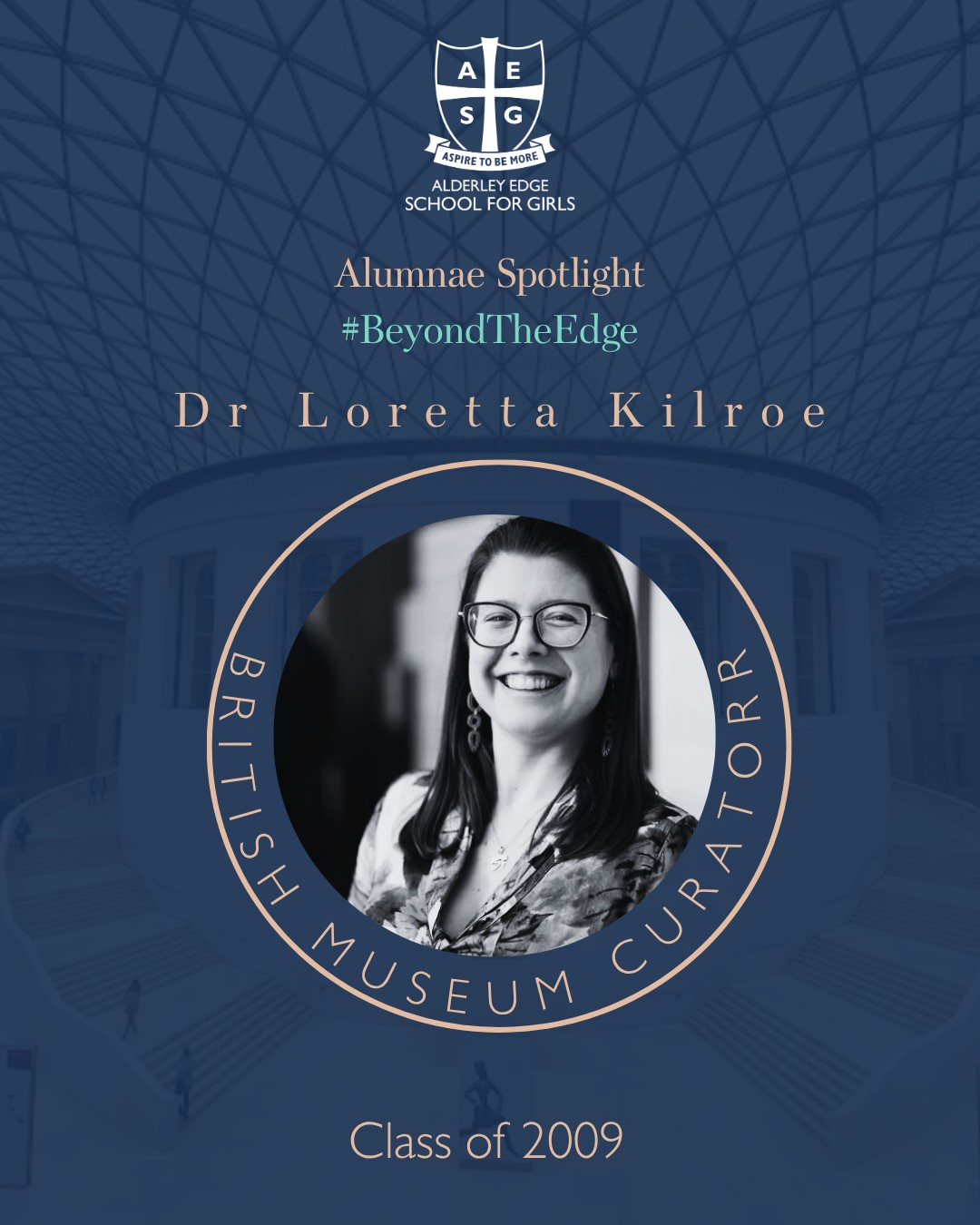 Her journey reflects the AESG values of intellectual curiosity, global citizenship, and leadership. We are incredibly proud of Dr Kilroe and her contributions to archaeology, cultural heritage, and museum curation.